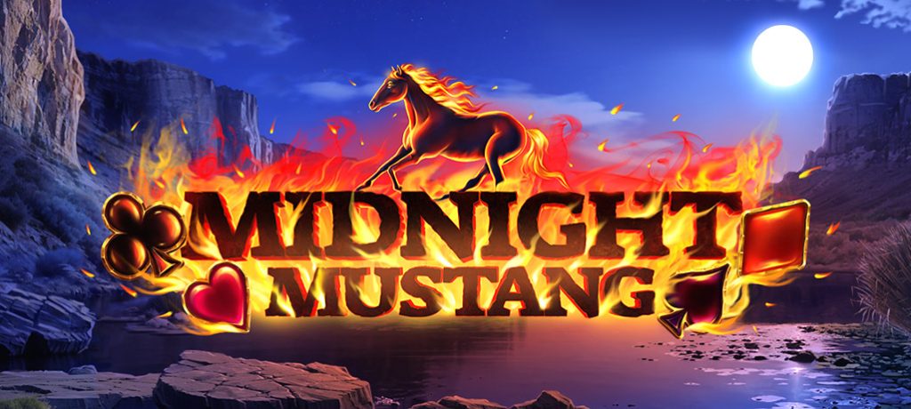 Wild West slot set under a moonlit desert sky, featuring flaming wilds and galloping horse symbols for big wins.
